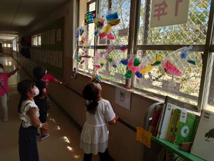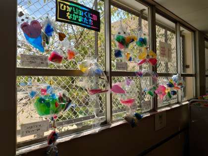 図画工作科で制作していた作品がみんなできたので、今日は作品鑑賞をしました。