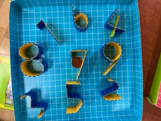 図画工作科の時間にコロコロガーレというビー玉転がしゲームを作っています。トンネルを作ったり、滑り台を作ったりとおもしろそうなコースを考えていました。完成が楽しみです。