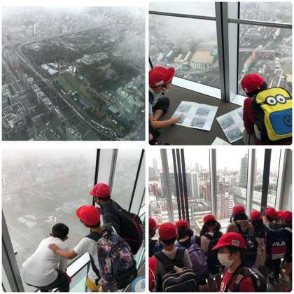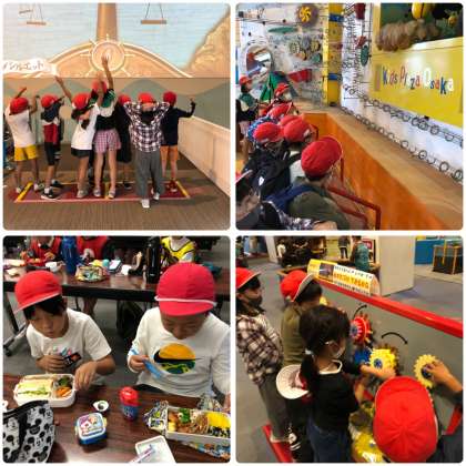 ハルカスの60階へ上がると360°真っ白の景色が待っていました。そんな中、子どもたちは見える範囲でワークシートに一生懸命チェックを入れていました。また、環状線を一周しながら、キッズプラザへ行き、お昼ご飯を食べました。午前中長旅だったので、お家の方からの愛情のつまったお弁当をペロッと平らげていました。その後、キッズプラザでいろんな体験をして楽しみました。