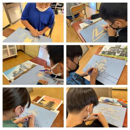 木版画に描いた厳島神社の大鳥居も原爆ドームも姫路城も、写真でしか知ることができなかったのですが、今のもう違います!!