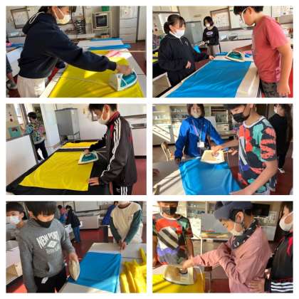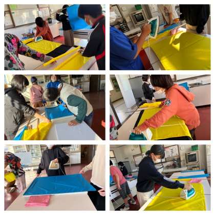 運動会で使用するフラッグを丁寧にアイロンがけしました。