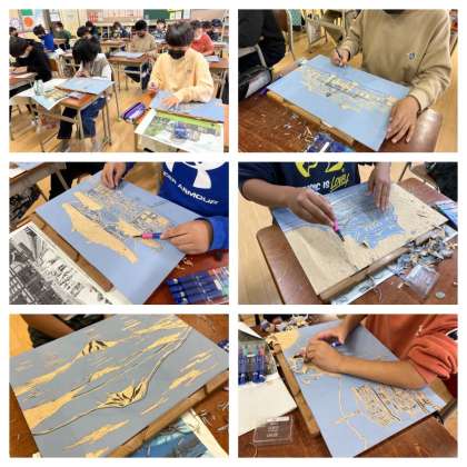 図画工作科の木版画ですが、終盤に差し掛かり、全貌が見えてきました。