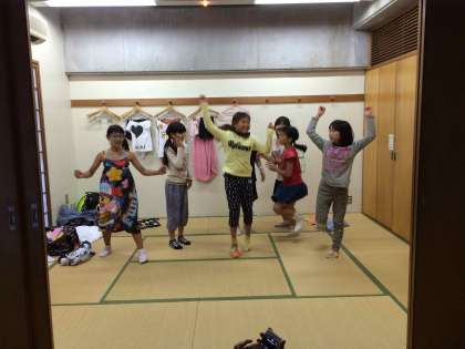女子部屋は、キャンプファイヤーに向けて踊りまくっています^^