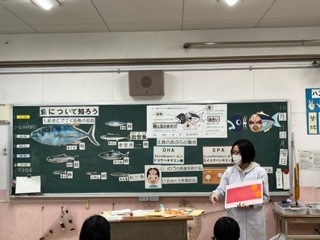 4年生の栄養指導は、「魚について知ろう」ということで、給食に出てくる魚についていろいろ教えていただきました。