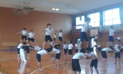 一人技〜三人技まで、音楽にのせて練習しました。