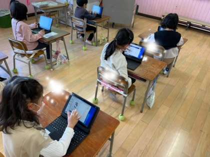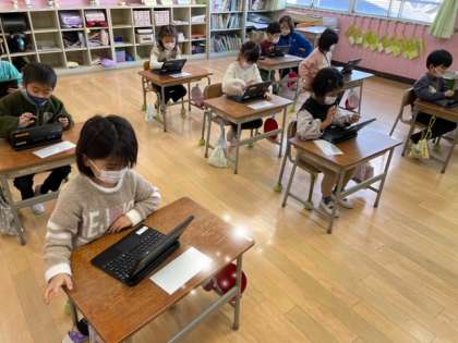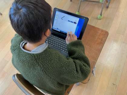 タブレットが新しくなりました。今まで使っていたものとは違い、1年生のタブレットもキーボード付きになりました。さっそく、ログインをして、デジタルドリルのナビマで学習をしました。使い方がわかると上手に使いこなしていました。