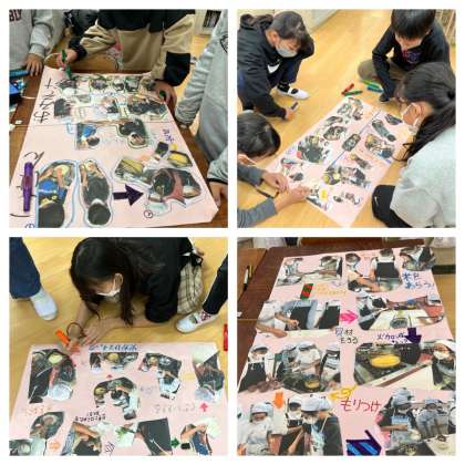 調理実習の際に撮った10枚の写真を使って、どのように調理したかがわかるような新聞を作ること!!