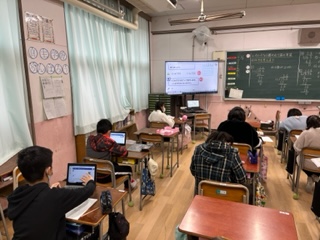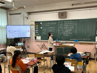 算数の時間に、「小数のかけ算とわり算」の学習をしています。今回も習熟度別少人数授業です。普段よりも手を挙げる児童が多く、分からないときも質問しやすいようです。考えたことを前で発表したり、早く問題ができた人は、パソコンを使って様々な問題を解いたりと、それぞれの課題に合わせて頑張っています。