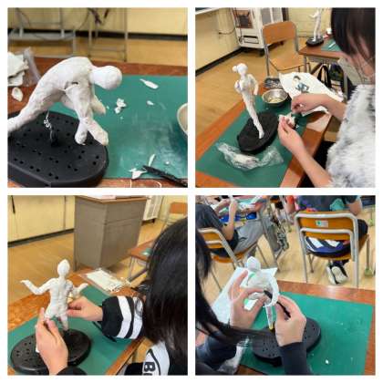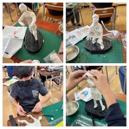 360度どこから見ても立体的に仕上がるように!と声をかけているので、芯材を回して見ながら粘土で肉付けしているところです。