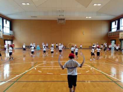 中学年は、民舞「荒馬」をします。フープを馬のに見立て