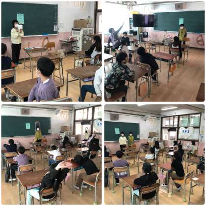 「かにむかし」「さんねん峠」「アナンシと五」の三つのお話を聞きました。子どもたちは、お話の世界に引きこまれ、集中して聞いていました。