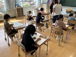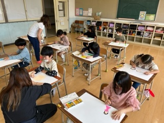 はじめは、「何を描こうかな〜」と迷っている子もいましたが、すぐに黙々と描きはじめていました。