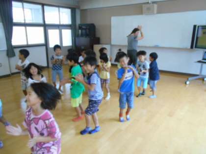 今日は1年生になって二回目の外国語の学習でした。オーストラリア出身、女性のギャビー先生です。まずは英語で歌いながらダンスをしました。そしてNGワードがでたらしゃがむゲーム、英語でじゃんけんなど、とっても楽しい1時間でした。ギャビー先生の面白い動きにノリノリでついていく様子がとってもかわいかったです。