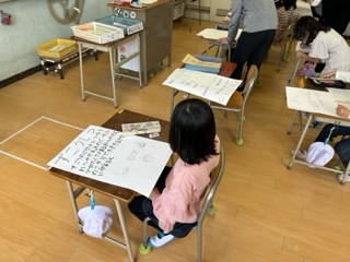 生活科の学習で、今日は学校たんけんの用意をしました。