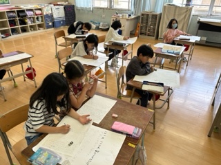 1年生に分かりやすく説明するために、どのようにしたらいいか考え、イラストや言葉を考える姿が見られました。