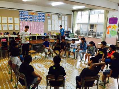 「みんなでトランプ」「リズムしりとり」「みんなで歌う(子どもの世界)」「班ごとにお祝いの言葉」「みんなで写真」このプログラムで進みました。大矢先生のお体のことを考えたプログラムで自分たちも楽しむことができました。