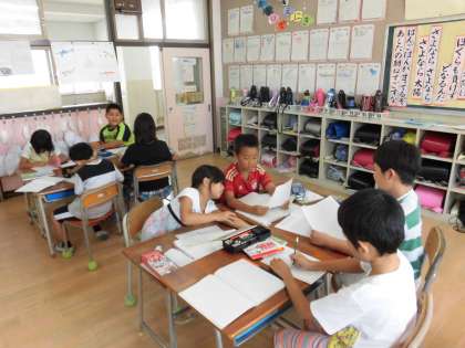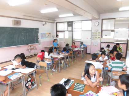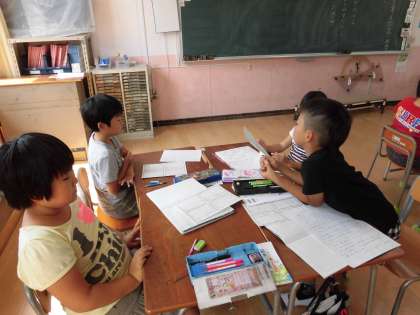 夏休みの思い出についての作文を書いて、今日はその作文を読みあいました。グループで読みあって、聞いた感想をカードに書いて伝えました。一生懸命書いた作文を読んで、拍手をもらったとき、どの子もとても嬉しそうな、照れくさそうな顔をしていました。