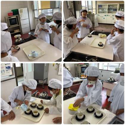 どの班も協力して、安全にお茶を入れることができました。「あつ〜い」「苦〜い」「美味しいー」と楽しそうな声がたくさん聞こえてきました。また、お家でもお茶を入れてみましょう。