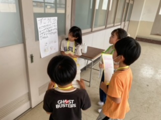 毎年1学期に、2年生が学校にある部屋を1年生に教えてくれる行事で、1年生とペアになって、学校中を探検しました。