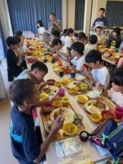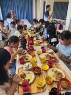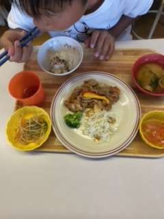 今日の夕飯、ポークチョップです。みんなお腹が空いていて、たくさん食べています。