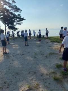 朝のつどいをしました。みんなでラジオ体操をしました。