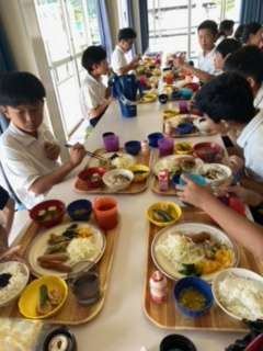朝食いただきまーす!食事係さん、お手伝いありがとう。