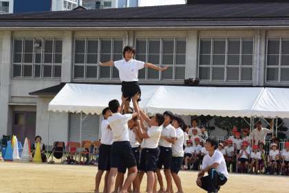 チアリーディングのように、上の子を跳ねあげたり、倒れてきたところをキャッチするトラストフォールは、最高の完成度でした。
