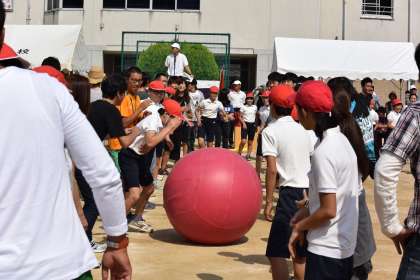 大玉ころがしでは、保護者や地域の方も一緒になって盛り上がりました。