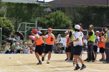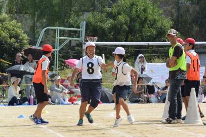 毎年恒例の種目となりました、保護者と6年の子どもたちによるリレーです。