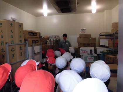 バックヤードから入らせていただき、普段は見ることができない肉や魚、野菜の冷蔵室や冷凍室にも入らせていただきました。たくさんの質問にも、答えていただき子どもたちも