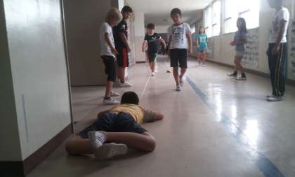 子どもたちは自分の歩幅がどれくらいあるのか、興味深々で学習に取り組みました。