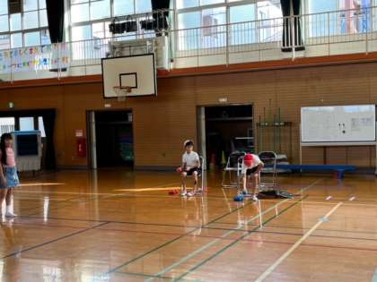 今日のニュースポーツクラブでは、座った状態でボッチャを行いました。