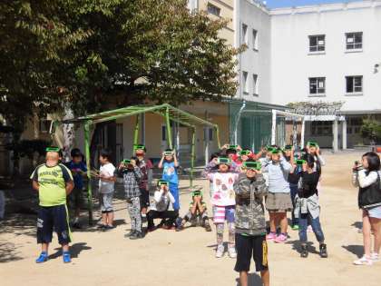 子どもたちも不思議でずっと太陽を見ていました。その後、日なたと日かげの様子について調べました。