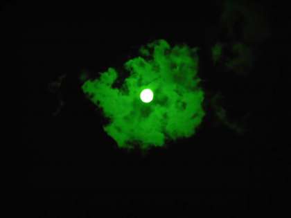 本日は、しゃ光板を持って外に出て太陽を見ました。しゃ光板を通して見ることができる太陽は何と緑色!