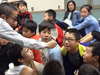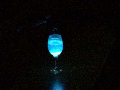 真っ暗の部屋の中で、青白く光るウミホタルに大歓声!