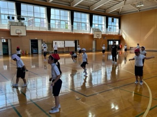 運動会の団体演技では、なわとびを使ったり、ダンスをしたりします。