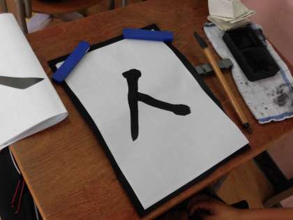 まずは、右はらいと左はらいの練習をしました。左はらいと右はらいでは、右はらいの方が難しく感じる子が多かったように感じます。