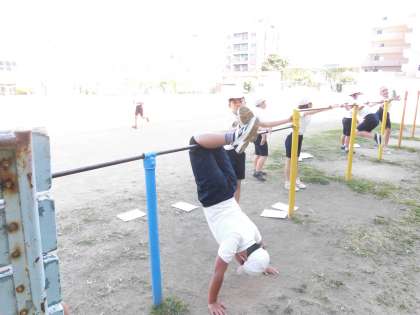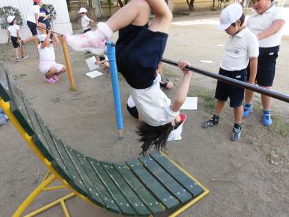 鉄棒が得意な子が、苦手な子に教える様子がたくさん見られることや、教えてもらって、また頑張ろうとする様子が素晴らしいです。