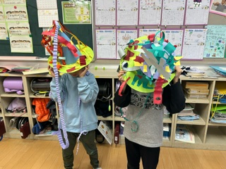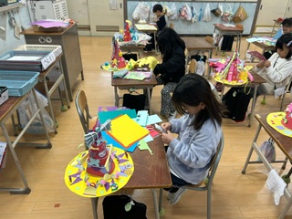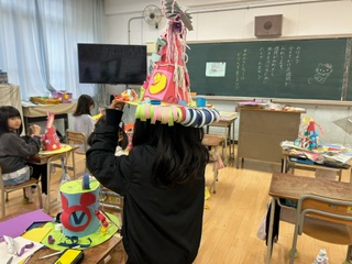 図画工作科では、すてきなぼうし作りをしています。