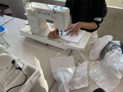 学校、そして、後輩たちに、贈り物として、ぞうきんを制作しています。