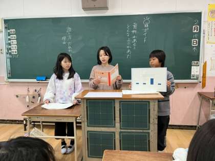 国語科の学習で、クラスで調べたいことを決めて、報告する活動を行いました。