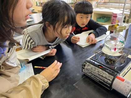 水をあたためるとどうなるのか観察しています。