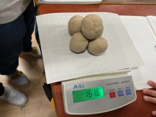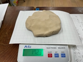 「ものの形をかえたとき、重さはかわるのだろうか?」を確かめるため、粘土を使って実験をしました。丸い形、三角の形、平べったい形、細長い形など、自分たちが考えた様々な形に粘土を変化させ、重さを計りました。
