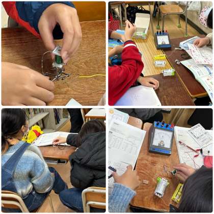 電磁石について学習をしています。「どうすれば、電磁石の力が強くなるか。」の実験をしました。みんなとても楽しそうに協力して、取り組めました。
