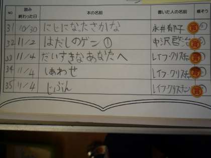 絵本を読む人が多いので、少しずつ絵本から物語の本へと目が向くようになるといいかな・・と思っています。