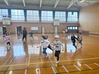 広い体育館で一緒に遊び、みんなとても楽しそうでした。