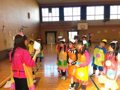 5年生は、新1年生と一緒に各コーナーを回って、案内する係です。