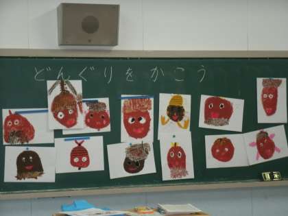 授業の終わりには16人の描いたどんぐりたちがずらりと並び・・・
