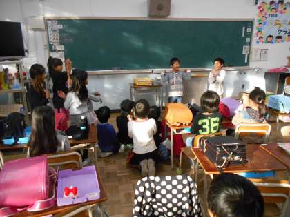 帰りの会の最後に全員でポッキーのダンスをしました。