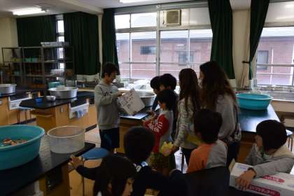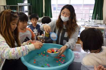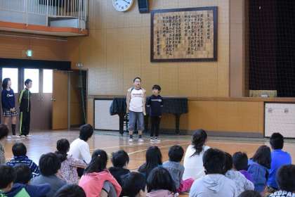 1〜6年生までの混合メンバーの縦割り班で、模擬店を出して楽しみました。
